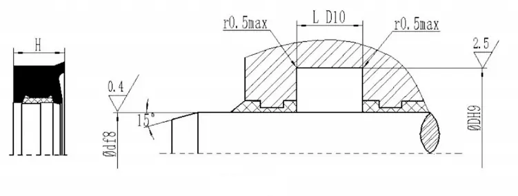 | रड व्यास df8 | खोयर व्यास रिपेट डीएच | स्लट चौडाई L d10 | मुहर उचाइ एच |