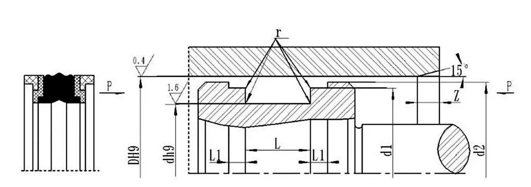 KDAS कम्पाउन्ड सील पाँच-घटक कम्प्रेसन-प्रकारको पिस्टन सील एसेम्ब्ली हो जसमा रबर सील गर्ने तत्व, दुई रिटेनिङ रिङ्हरू, र दुईवटा गाइड रिङ्हरू हुन्छन्। यो द्विदिश दबाव पिस्टन सील लागि उपयुक्त छ।