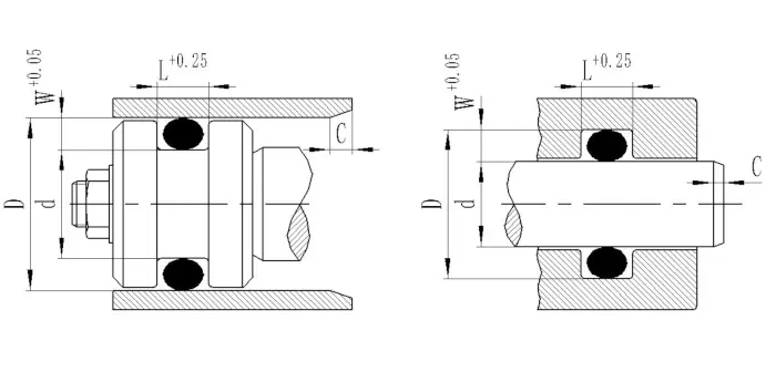 एक। स्थापना ग्रुप स्पेस लगभग 100% विकृति पछि ओ-रिंगको मात्रा भरिन्छ, जसले सम्पर्क क्षेत्र बढाउन सक्दछ र Elastomer मार्फत भिन्नता समय।
