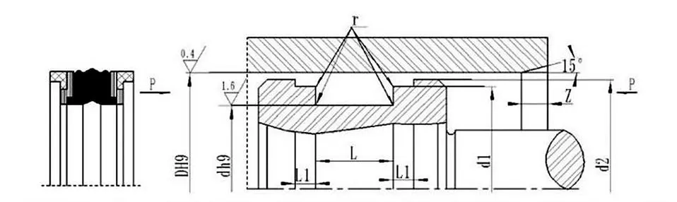 TPM संयुक्त पिस्टन (बोर) सिल पाँच-घटक कम्प्रेसन पिस्टन सील एसेम्बली हो जसमा प्रोफाइल गरिएको रबर सील तत्व, दुई रिटेनिङ रिंगहरू, र दुई गाइड रिंगहरू हुन्छन्। यसको नाली डिजाइन प्रभावकारी रूपमा विधानसभा को समयमा विरूपण रोक्छ र द्विदिश दबाव पिस्टन सील लागि उपयुक्त छ।